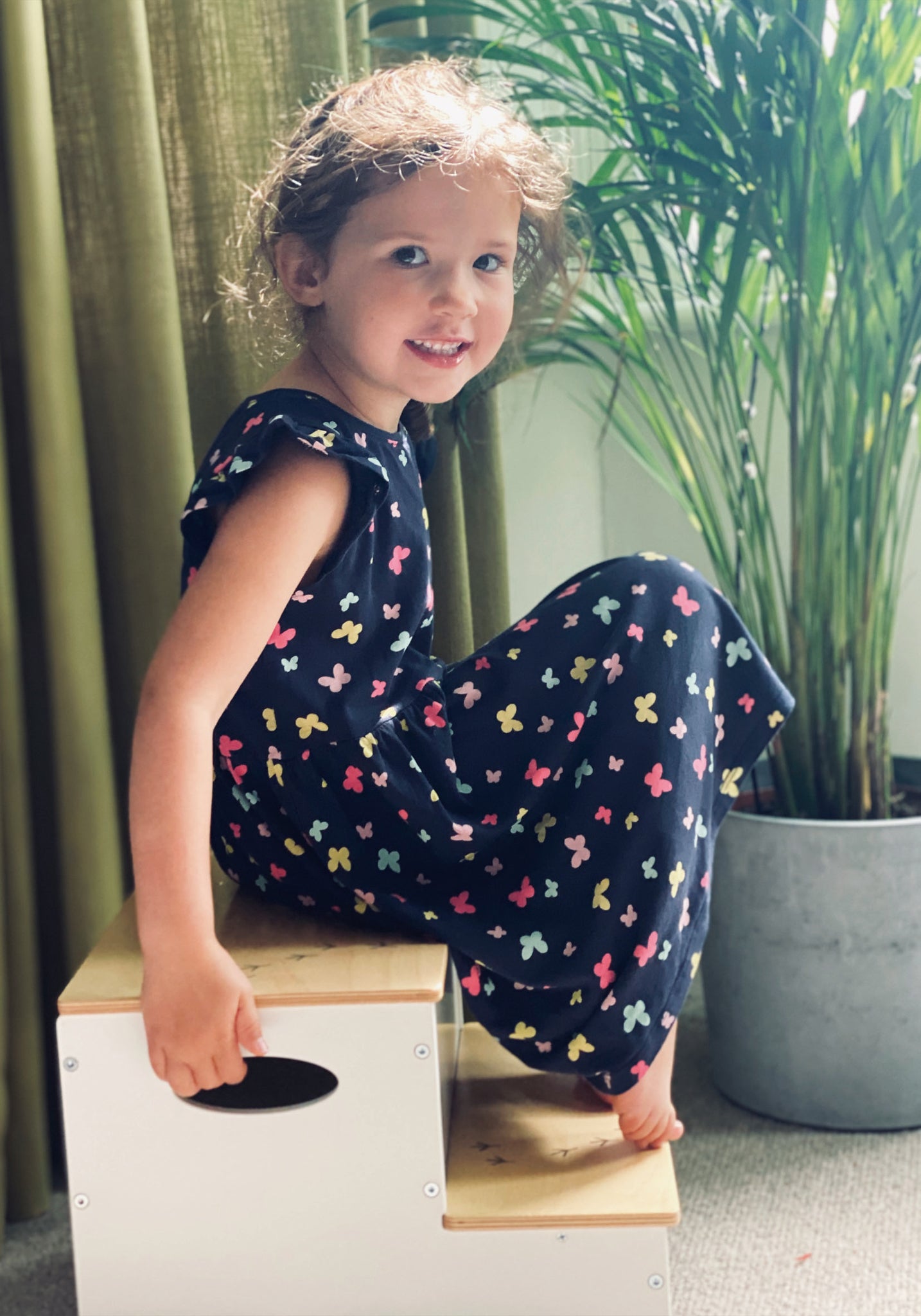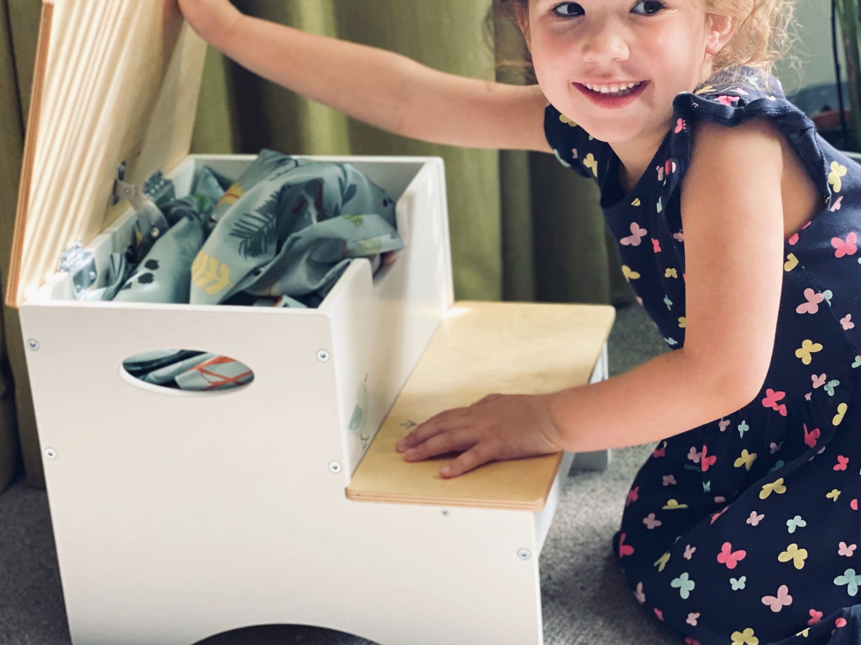 This step can be used to get to those out of reach places and has handy holes either side for easy carrying. Lift the top lid to find a secret compartment.