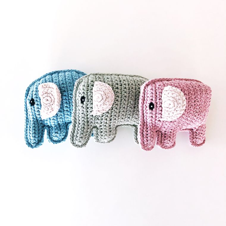 This adorable elephant rattle is as soft as butter and gentle as rain. Handmade with organic cotton yarn, the rattle inside gives a gentle jingle when shaken. Perfect for tiny hands to hold and love.