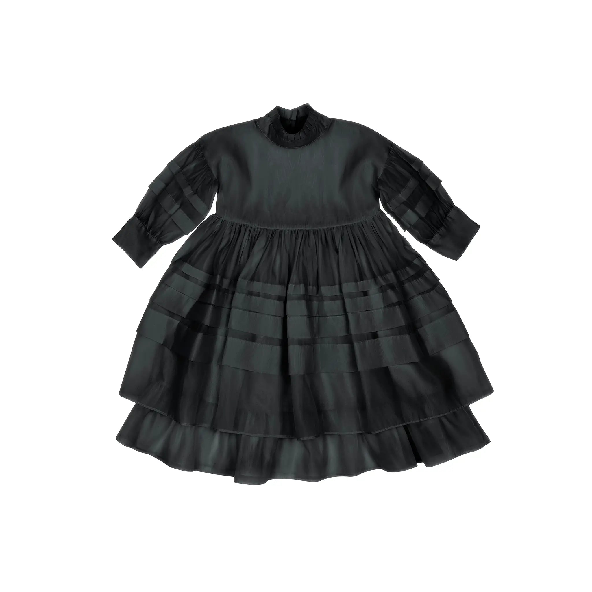 OMAMIMINI- LONG SLEEVE PLEATED ORGANZA TULLE DRESS.