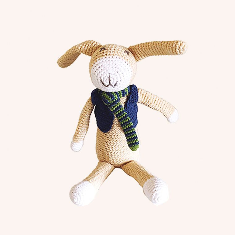 This sweet little bunny rattle is as cuddly as it looks. Lovingly handmade with soft cotton yarn, this knit bunny rattle is designed to last for generations. Made for little hands to hold and jingle, this little rattle is ready to hop through a world of adventure with your little one.