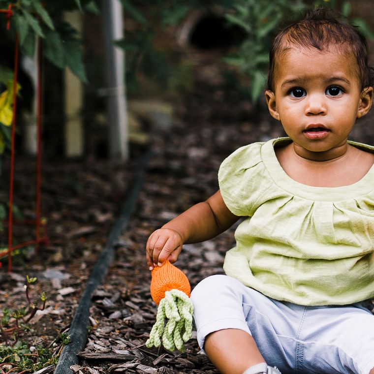 This brightly colored orange carrot is topped with vibrant playful green leaves. Handmade with soft cotton yarn, it is lightweight and oh so enjoyable for little hands. The rattle inside has a very gentle sound when shaken. Perfect for hours of pretend play, this carrot rattle is bound to be your child's favorite first vegetable.