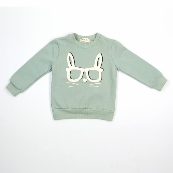 DOE A DEAR- L/S CREWNECK BUNNY GLASSES SWEATER IN SAGE