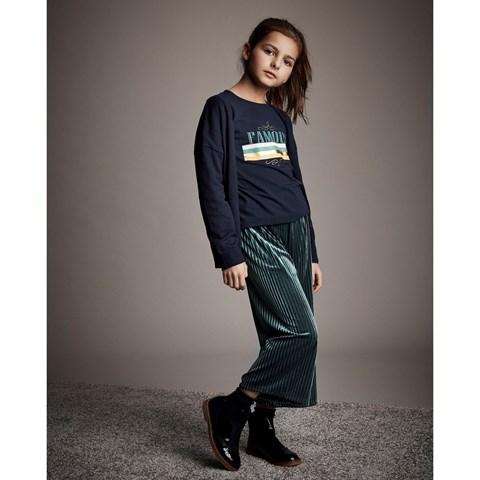 Velour trousers by Creamie. The trousershave a soft, pleated material. They have an elasticated waist and a wide fit.