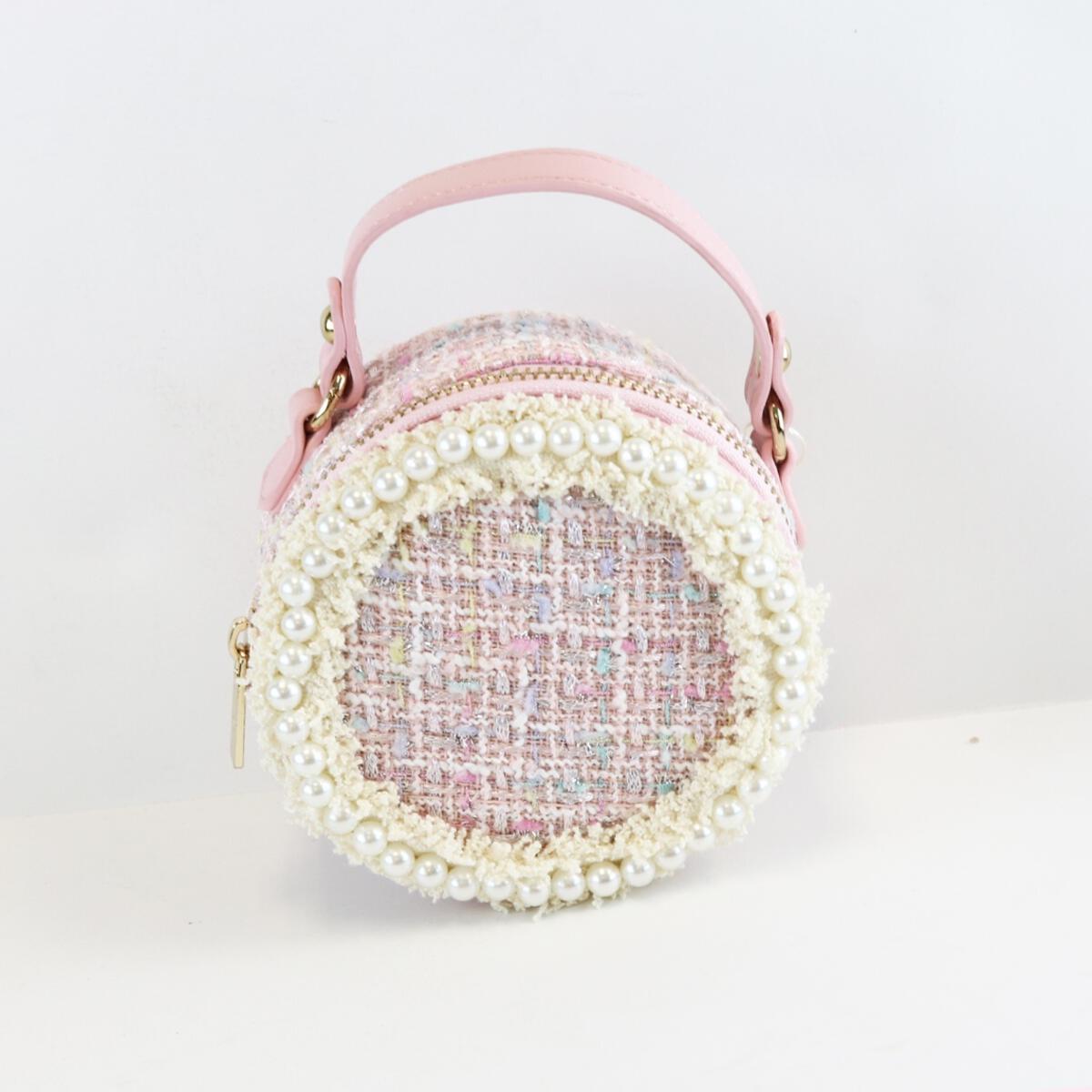 DOE A DEAR- PEARL TRIM TWEED ROUND PURSE