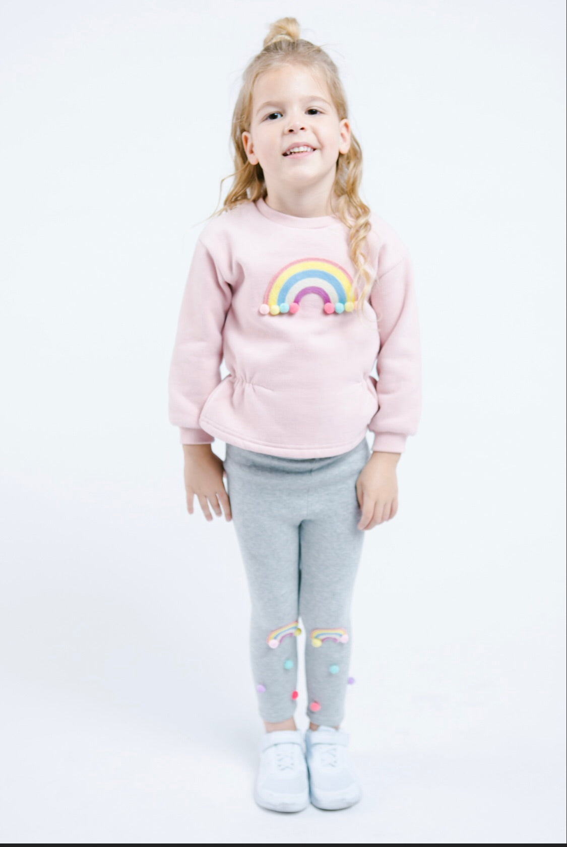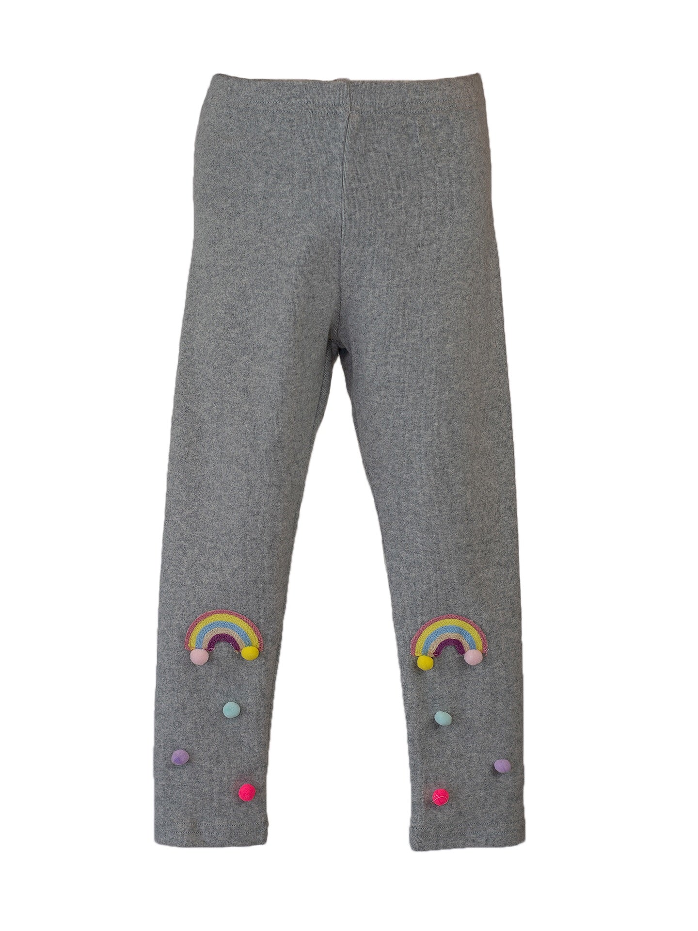 LITTLE WHO HEATHER GREY RAINBOW POM POM TIGHTS WITH ELASTIC WAIST.