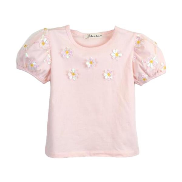 DOE A DEAR- SNOW PINK DAISY SEQUIN FLORAL MESH TOP