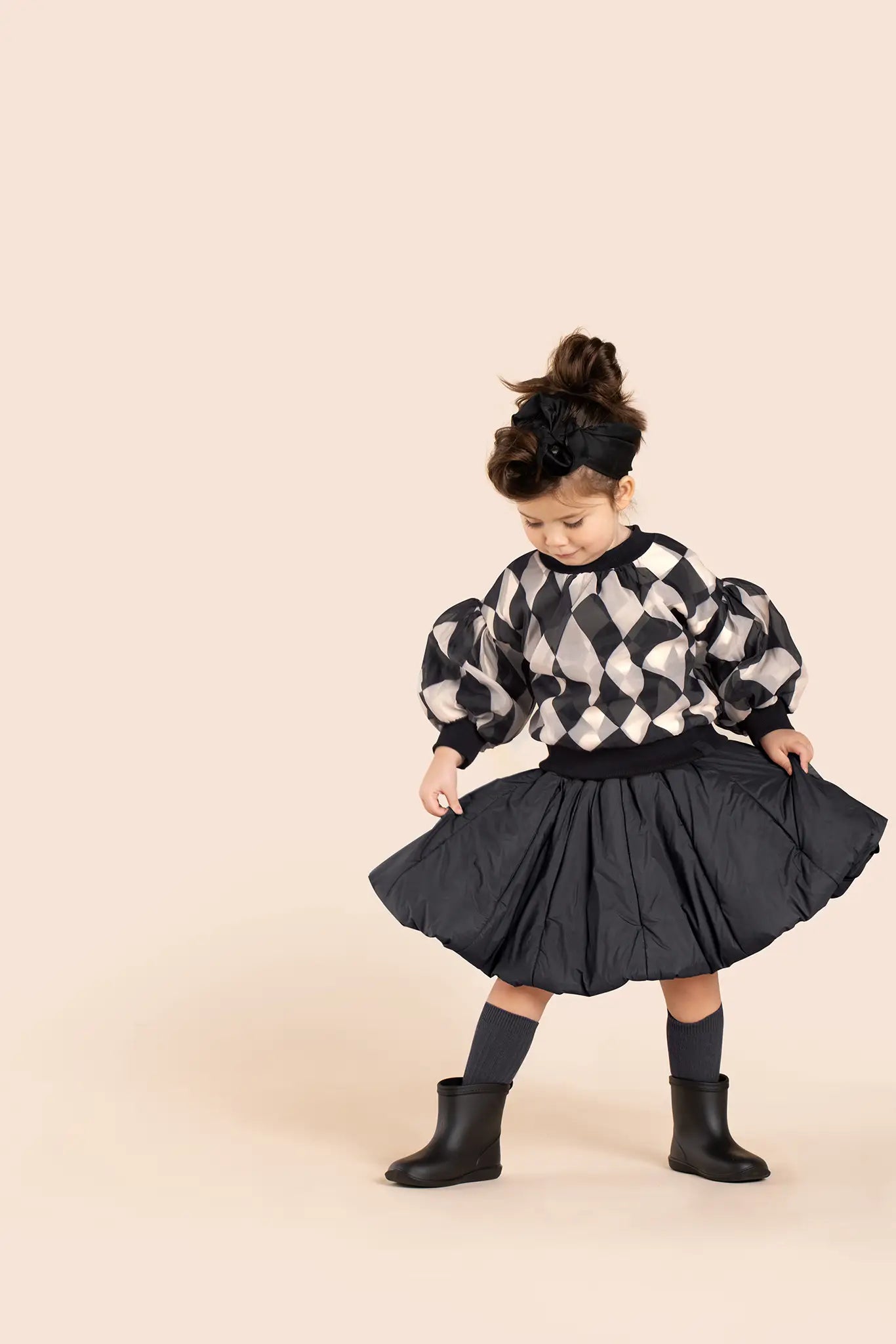 OMAMIMINI- BLACK NYLON QUILTED SKIRT