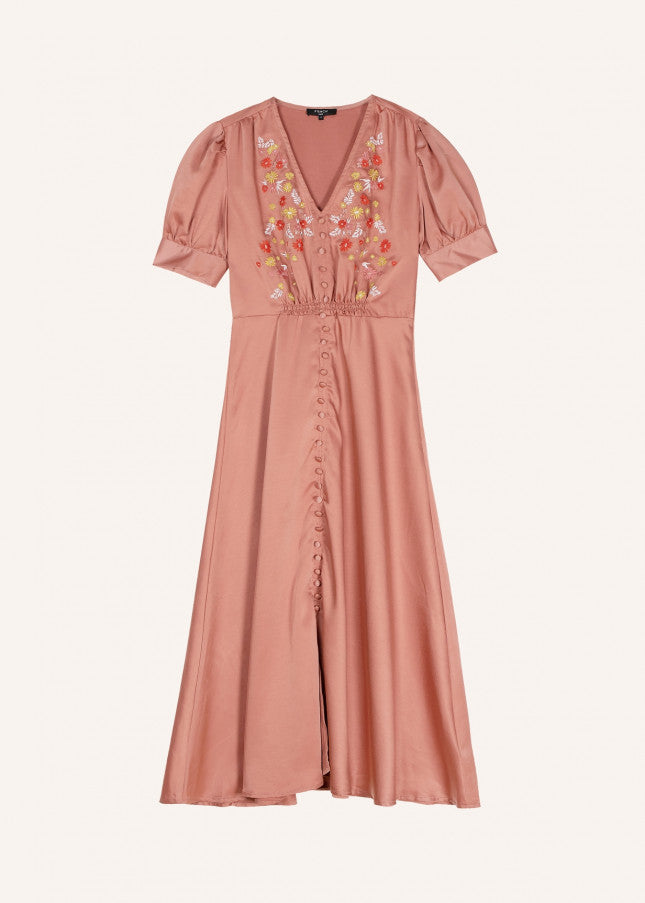 The Adema dress is THE must-have of the Le Marais collection! Its exclusive floral embroidery created by our designers, its trendy colour and its fluid and light fabric make it a unique piece to have absolutely in your wardrobe for the new season.