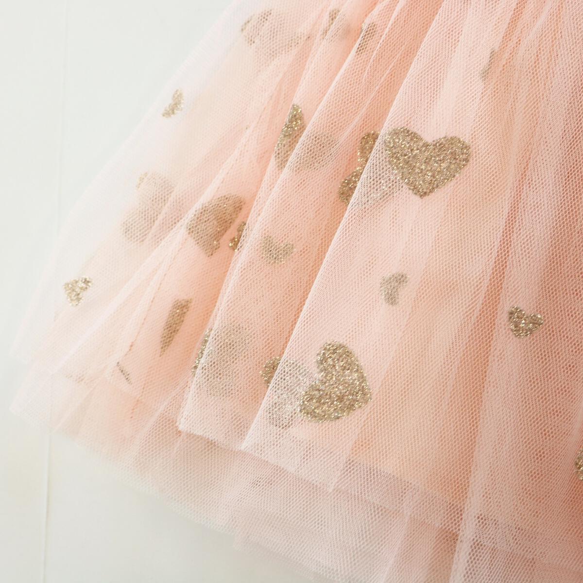DOE A DEAR- PINK TULLE SKIRT WITH BIG GOLD HEARTS